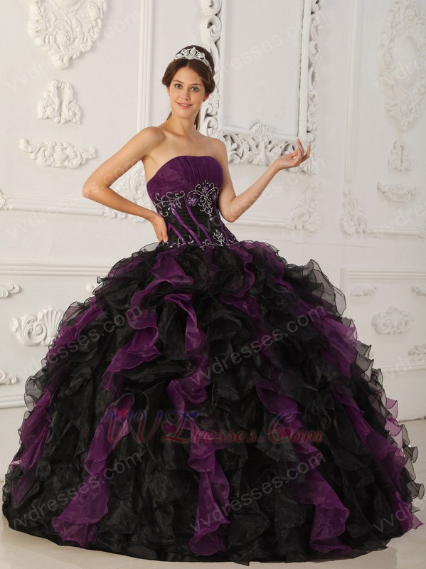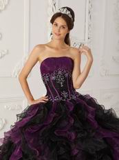 Purple And Black Ruffle Skirt Designer Quinceanera Dress