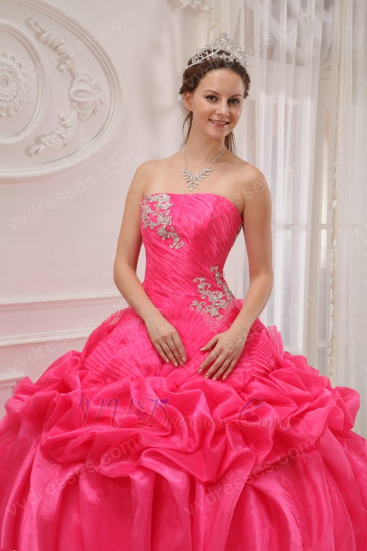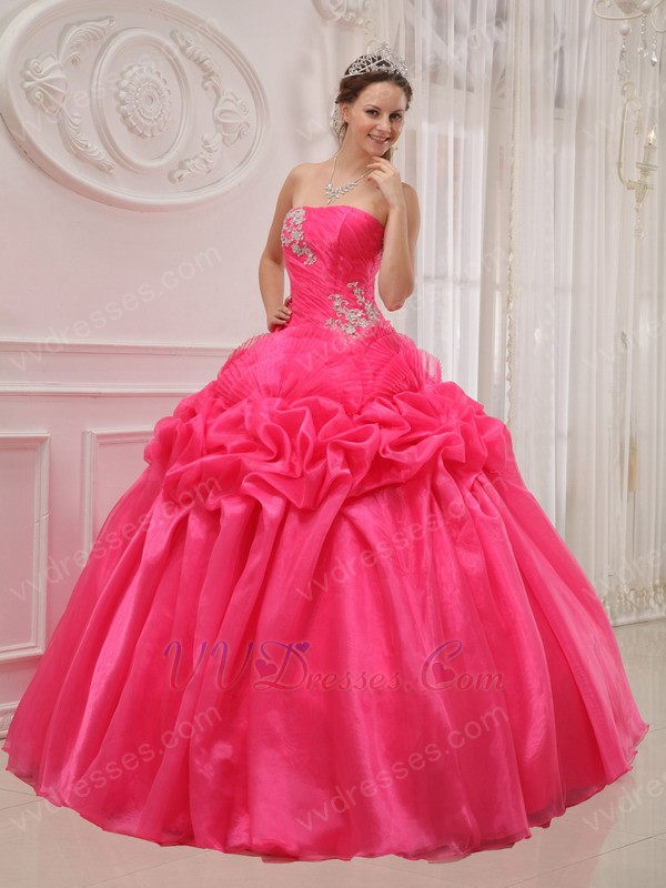 Rolled Flowers Decorate Top Designer Quinceanera Hot Pink Dress
