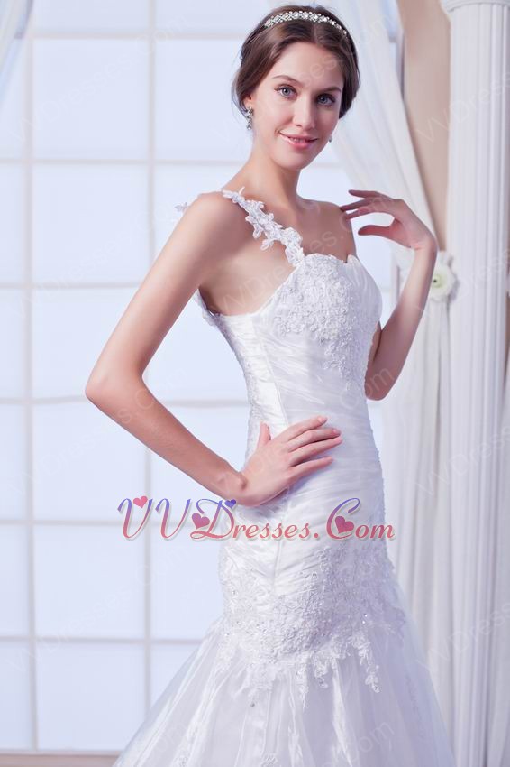 Elegant One Shoulder Appliques Bodice Mermaid Wedding Dress