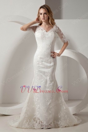 Modest Half 1/2 Sleeves Mermaid Lace Bridal Wedding Gown