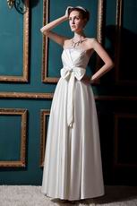 Simple Strapless Bow Aline Ivory Stain Church Wedding Dress For Sale