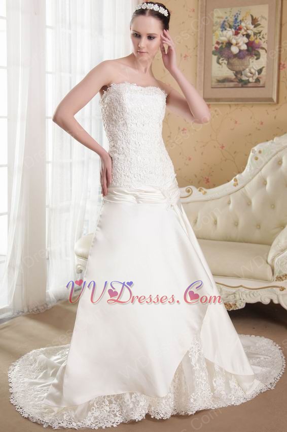 White Princess Strapless Brush Taffeta Appliques Wedding Dress