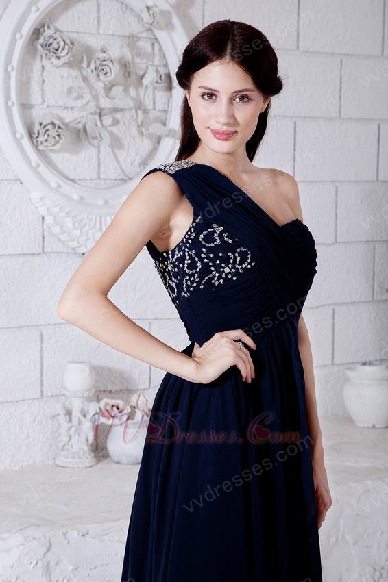 Affordable One Shoulder Navy Blue Chiffon La Femme Prom Dress