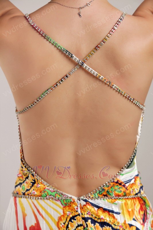 Backless Cross Back Colorful Printed Fabric Women In Prom Dresses