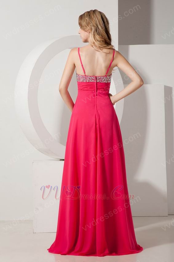 Beaded Spagetti Straps Deep Rose Pink Prom Dress For Sale Online