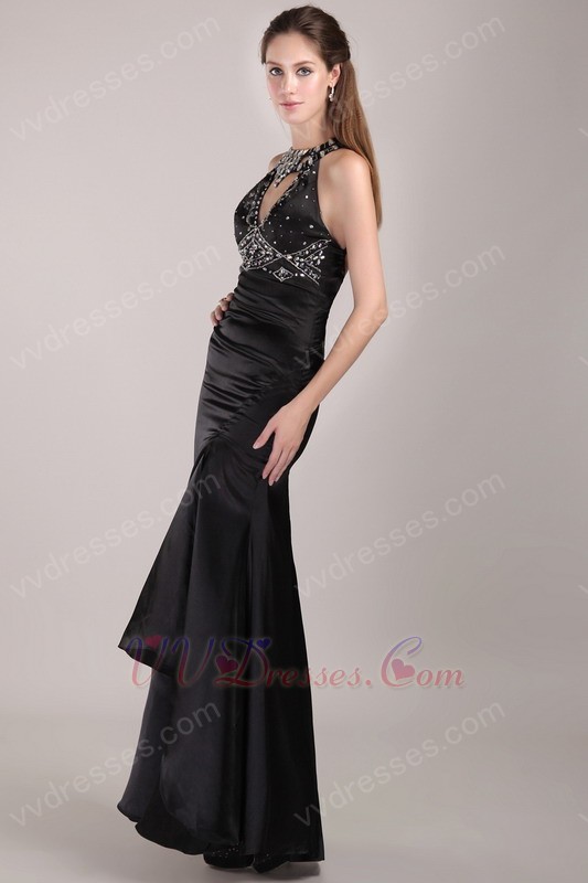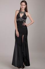 Black Column Rhinestones Backless Prom Dress With Side Split