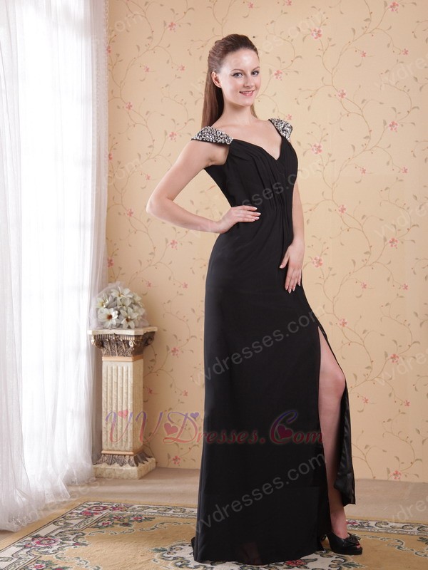 Black V-neck Women In Sexy Prom Party Dress With Side Split