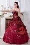 Burgundy Taffeta Prom Ball Gown With Embroidery Emberllishments
