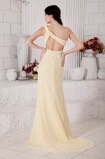 Cross Back One Shoulder Yellow Formal Prom Dress With Spit