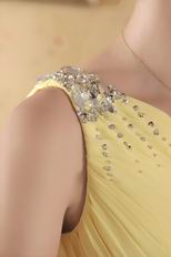 Crystals Emberllish One Shoulder Yellow Chiffon Prom Dresses UK