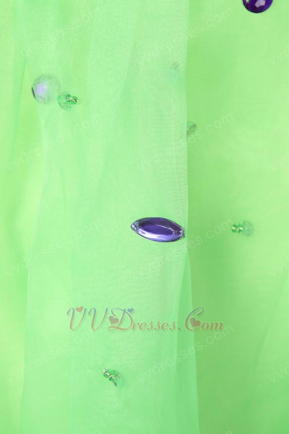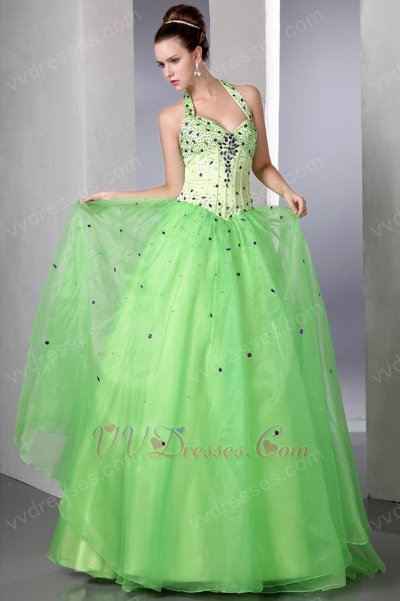 Halter Spring Green Prom Dress Design With Purple Crystals
