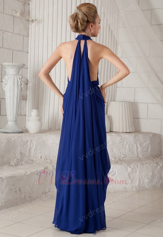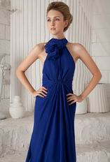 Halter Watteau Royal Blue Chiffon Customized Tailoring Prom Dress