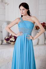 One Shoulder Cross Back Aqua Chiffon Women In Party Prom Dress
