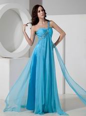 One Shoulder Floor-length Aqua Chiffon Prom Dress 2014