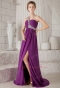 One Shoulder Watteau Purple Chiffon Discount Prom Dress With Split