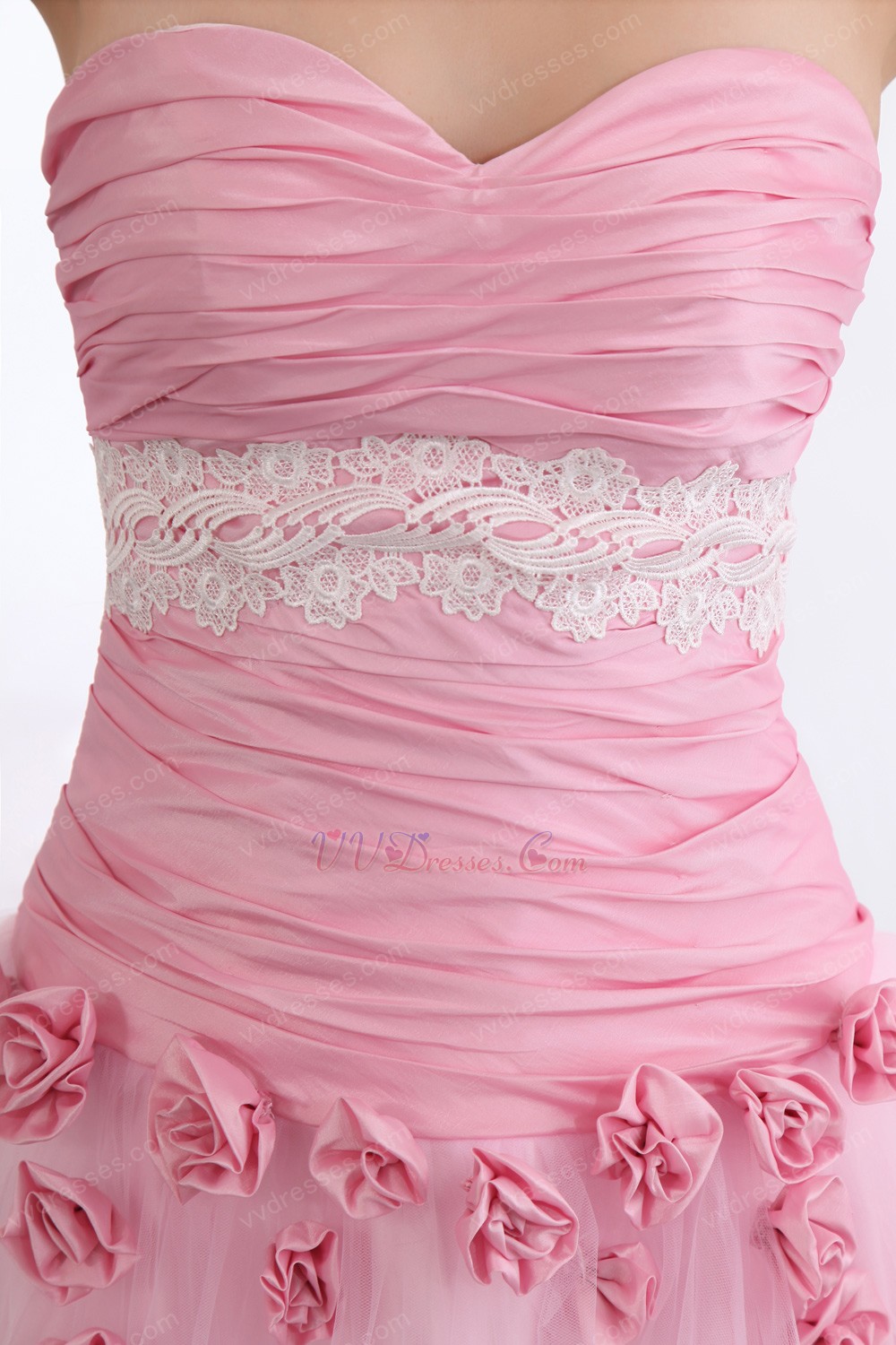 Pretty Sweetheart Pink Net Skirt Prom Dress With Flowers Decorate