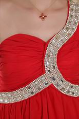 Red Chiffon Fabric One Shoulder High Low Prom Dress