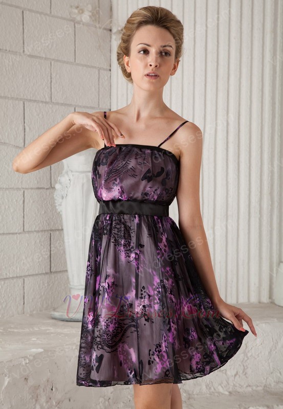 Spaghetti Straps Printed Fabric Designer Short Prom Dress 2014