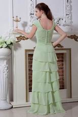 Straps Spring Green V-Neck Layers Skirt Chiffon Fabric Prom Dress