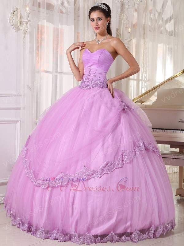 Lilac Strapless Applique Emberllishment Quinceanera Gown Stylish