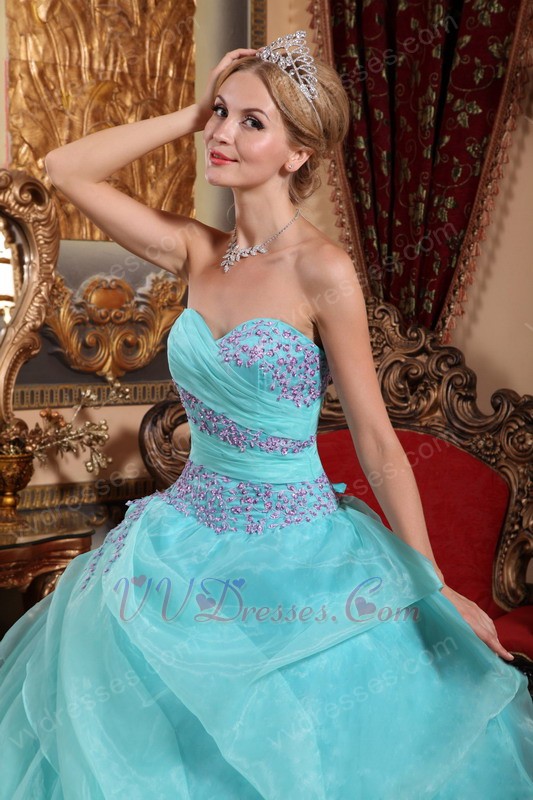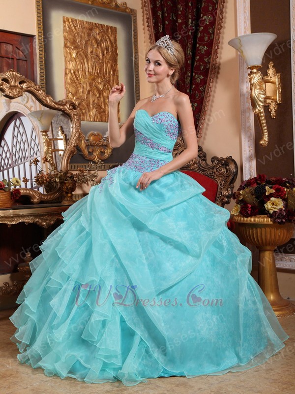 Ruffle Skirt Sweetheart Quinceanera Gown Dress Aqua Blue