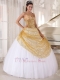 Spaghetti Straps White Skirt With Golden Sequin Sweet Sixteen Dress