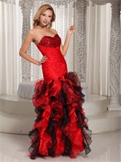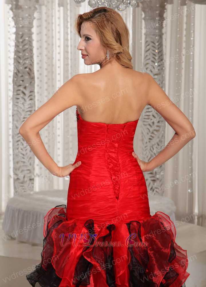 Amazing Sheath Black and Red Organza Ruffles Prom Gowns Decent