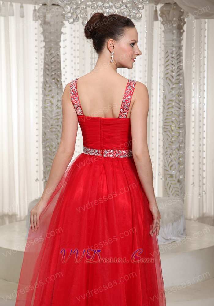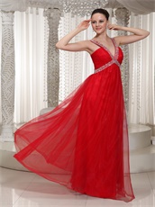Amazing X-shape Beading Straps Red Prom Dress With Deep V Neck