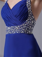 Double Silver Beaded Straps Royal Blue Chiffon Maxi Prom Dress City