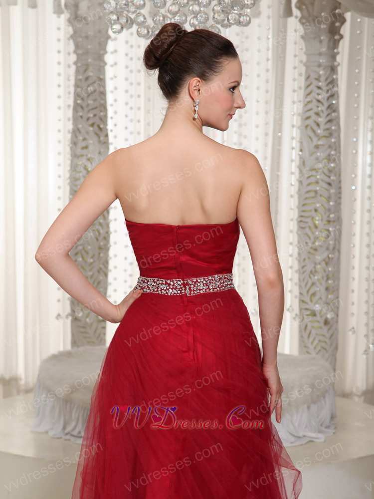 Floor-length Soft Wine Red Tulle Sweetheart Prom Dress Discount Under 100