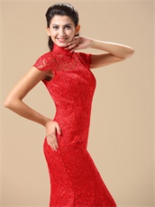 Pretty Short Sleeves Fully Flat Red Prom Evening Dresses Manufacturer