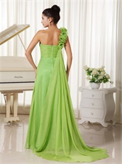 Single Floral Sleeve Spring Green Ballroom Dancing Dress With Watteau Train