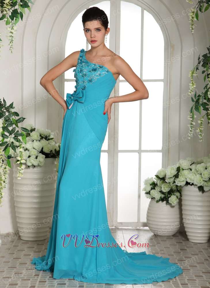 Single Strap Turquoise Draped Skirt Girl Formal Evening Prom Gown