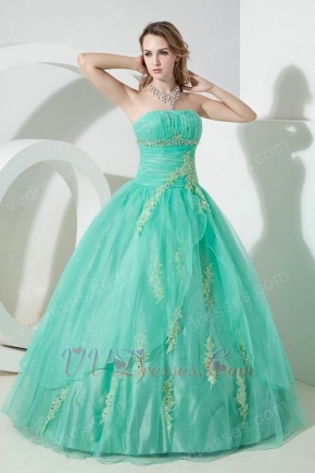 Fashion Strapless Spring Green Evening Ball Gown With Applique