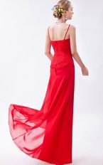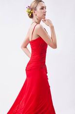 Spaghetti Straps High Low Cascade Front Red Evening Dress