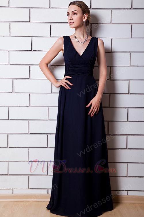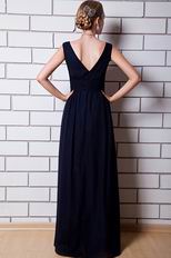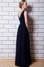 V Neck Design Navy Blue Chiffon Evening Celebrity Dress