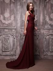 V-neckline Burgundy Chiffon Oscar Evening Dress For Cheap