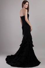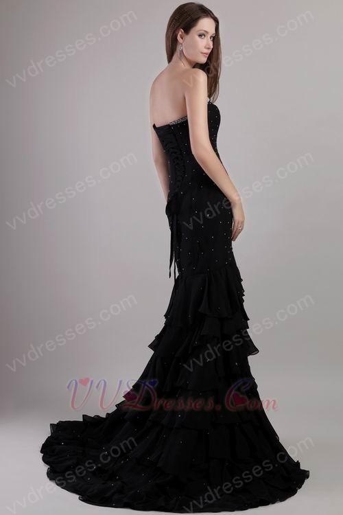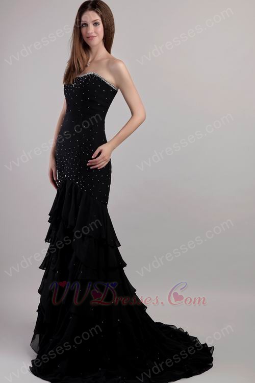 Black Chiffon Evening Gowns Dress Trumpet Layers Skirt
