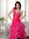 One Shoulder High Low Hot Pink Club Dress For Women