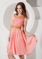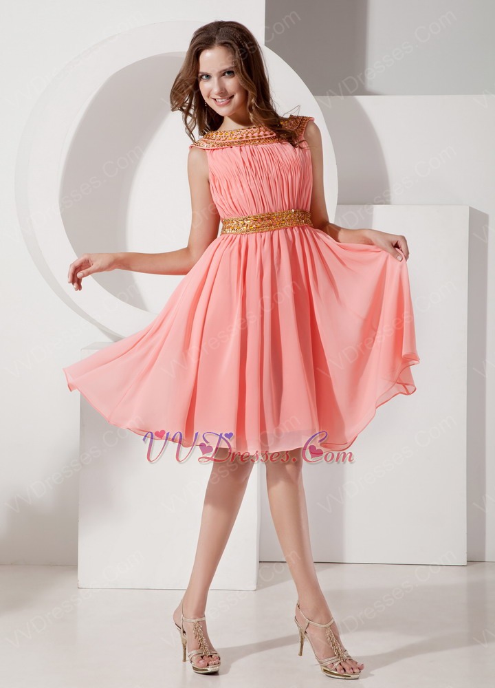 A-line Bateau Neck Watermelon Chiffon Short Prom Dress