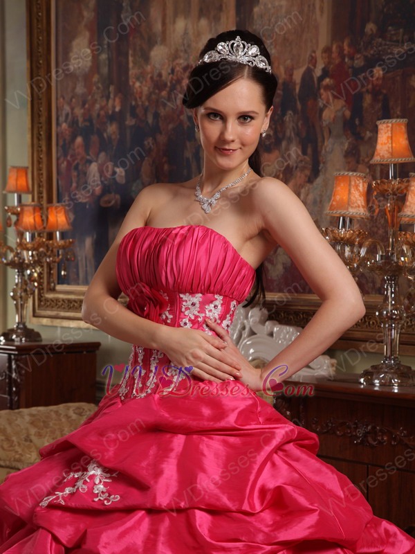 Strapless Coral Red Quinceanera Gown Online Shopping