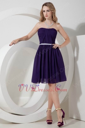 Strapless Purple Chiffon Bridesmaid Dress With Belt