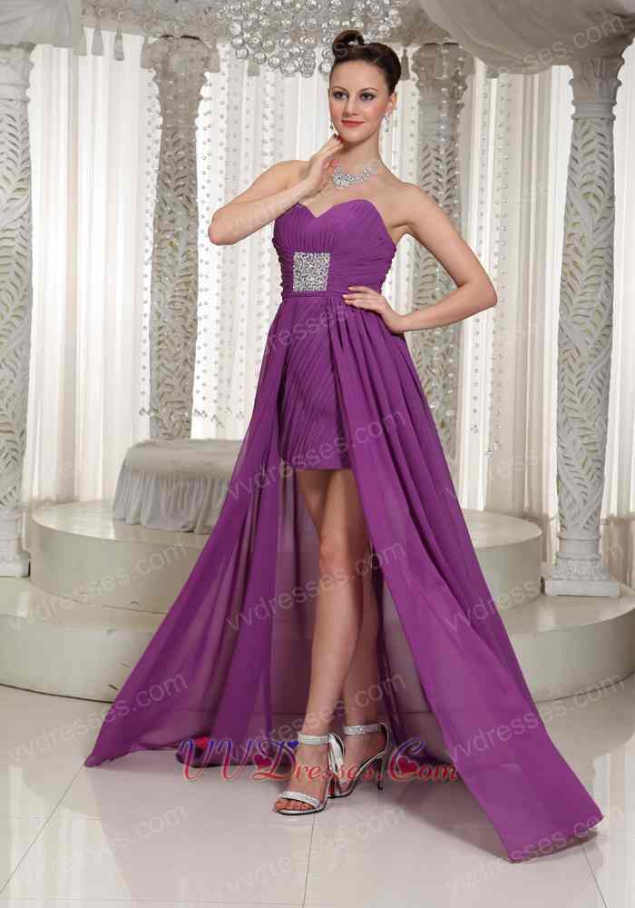 Shirred Bodice Purple Chiffon Prom Dress High-low Design Group Purchase