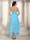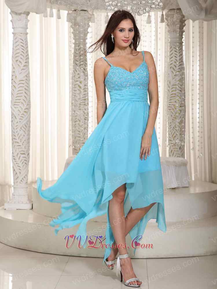 Spaghetti Straps Asymmetrical High Low Aqua Prom Dress Sexy Short and Long Skirt