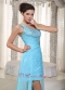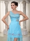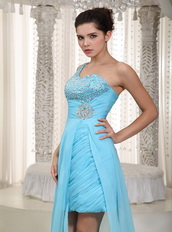 Top High-low Prom Dress With One Shoulder Aqua Blue Chiffon Skirt Short and Long Skirt