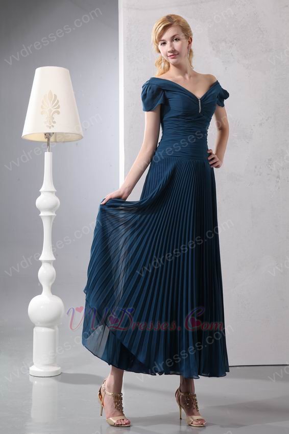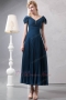 Cap Sleeves Ankle Length Navy Homecoming Dress