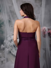 Halter Ankle-length Burgundy Chiffon Dress For Homecoming Summer