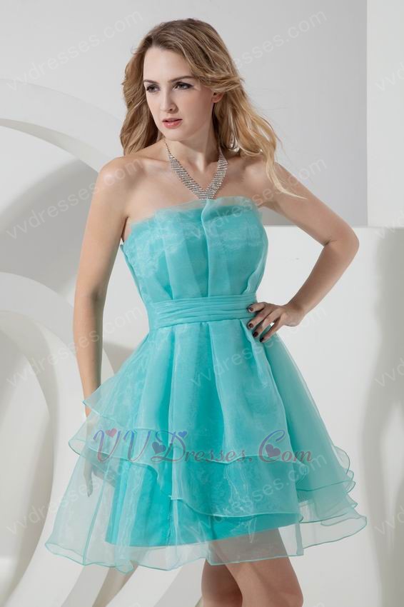 Simple Strapless Layers Aqua Dress To Homecoming Wear