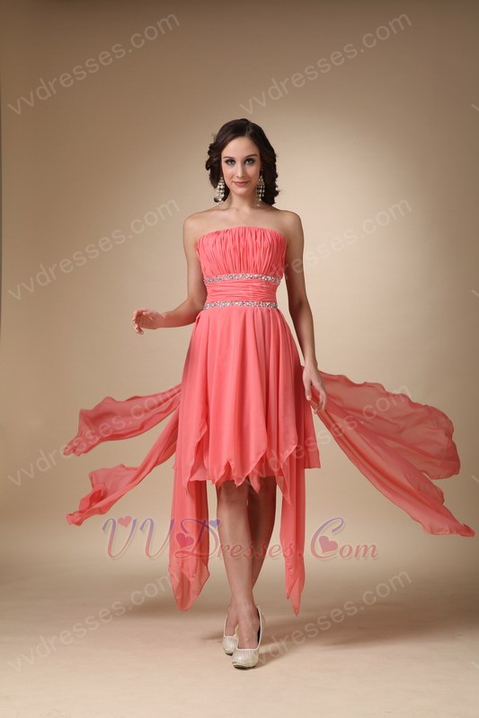 Watermelon Cascade Skirt High Low Homecoming Dress