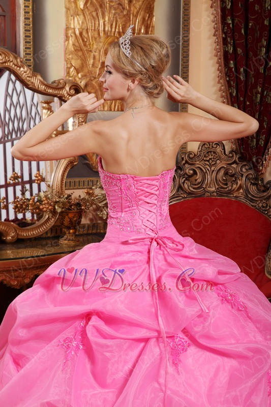 Beautiful Strapless Hot Pink Organza Princess Prom Ball Gown